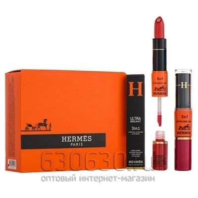 Помада для губ Hermes "Ultra Briliant 3 in 1 Lipstick Lip Gloss & Lip Balm" (12 in 1)