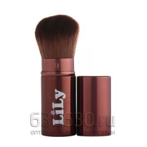 Кисть натуральная для нанесения пудры и румян"Lily"бардовая (в тубе)