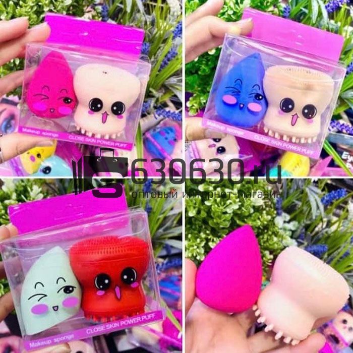 Набор спонжей (спонж для макияжа+спонж для умывания) в ассортименте 1упак.(2 спонжа)