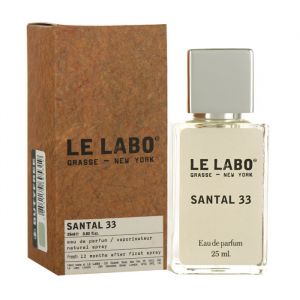 Le Labo Santal 33 - древесно-фужерный аромат для мужчин и женщин, выпущенный в 2011 году американским парфюмерным брендом Le Labo. Аромат сплетается в яркую ольфакторную мелодию горьковато-пряного кардамона, пудрового ириса, нежной фиалки и смолистых нот амброксана, которые придают глубину дымно-древесному сплаву австралийского сандала и кедра. Аромат потертой кожи придает парфюму особую харизматическую ноту. Пряные и мускусные ноты смягчают аромат и придают ему характер унисекс, привлекательность и комфорт.