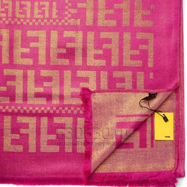Палантин 3D Fendi Двухсторонний (Светло-Вишневый/Золотистый)