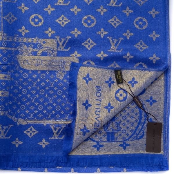 Палантин 3D Louis Vuitton Двухсторонний (Темно-Голубой/Золотистый)