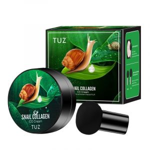 Тональное средство для лица - кушон TUZ Snail Collagen CC Cream имеет легкую муссовую структуру. Состав равномерно ложится на коже, маскируя неровности и недостатки.